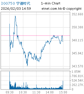 | 300750 | 宁德时代 | 347.910 | -1.070 | -0.307% | 92.21亿 | 30.044 | 深股通 # | |