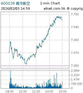 | 600029 | 南方航空 | 7.650 | +0.390 | +5.372% | 7.60亿 | -- | 沪股通 | |