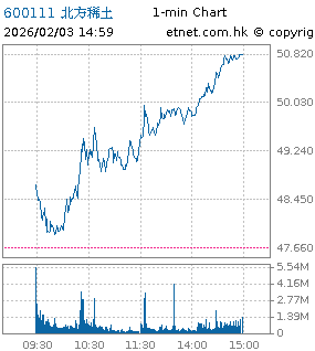 | 600111 | 北方稀土 | 50.810 | +3.150 | +6.609% | 75.93亿 | 182.9014 | 沪股通 | |