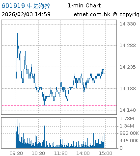 | 601919 | 中远海控 | 14.220 | +0.070 | +0.495% | 9.26亿 | 4.6169 | 沪股通 | |